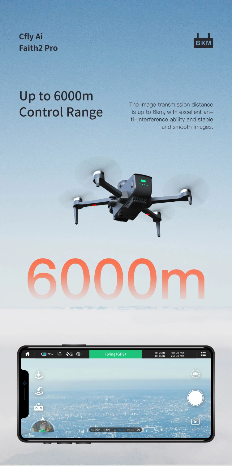 CFLY Faith 2pro Drone,3-Axis Gimbal Camera,4K Video,5 Directions of Obstacle Sensing,32 Mins Flight Time,6km Video Transmission
