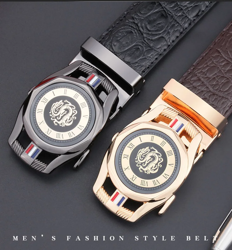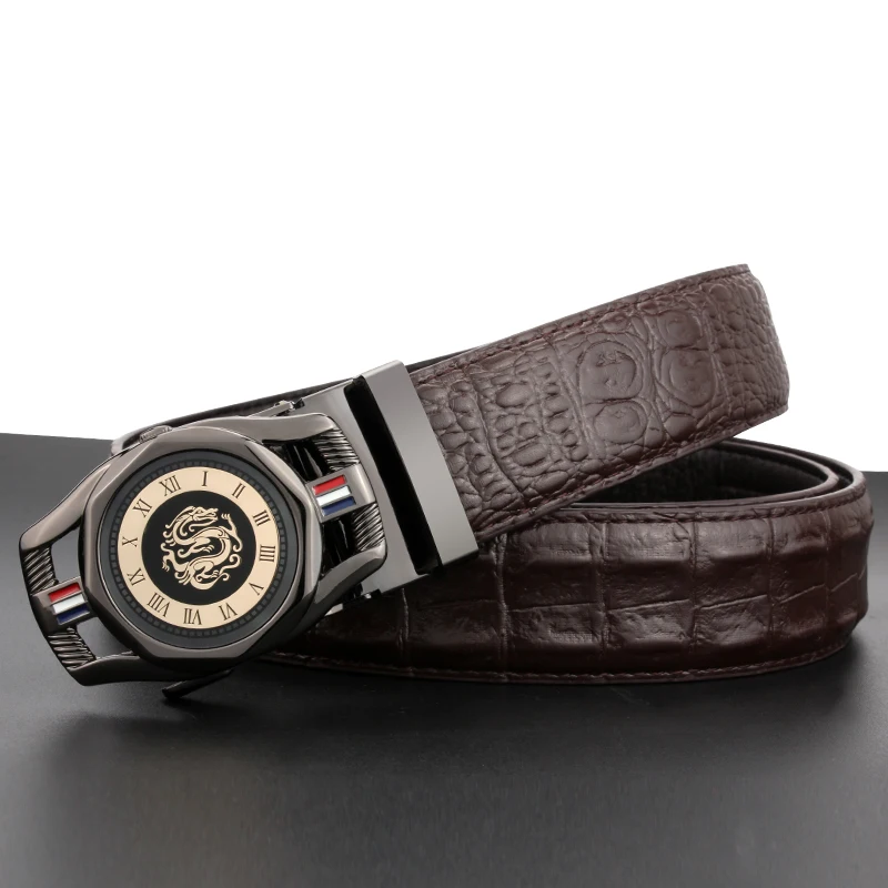 Cow Leather Men’s Belt Luxury Crocodile Skin Texture High Quality Male Leather Belt For Business Suit Automatic Buckle