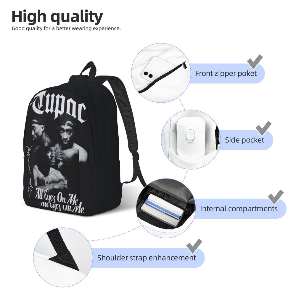Tupac 2PAC Rapper Cool Backpack Sports Student Hiking Travel Daypack for Men Women College Canvas Bags